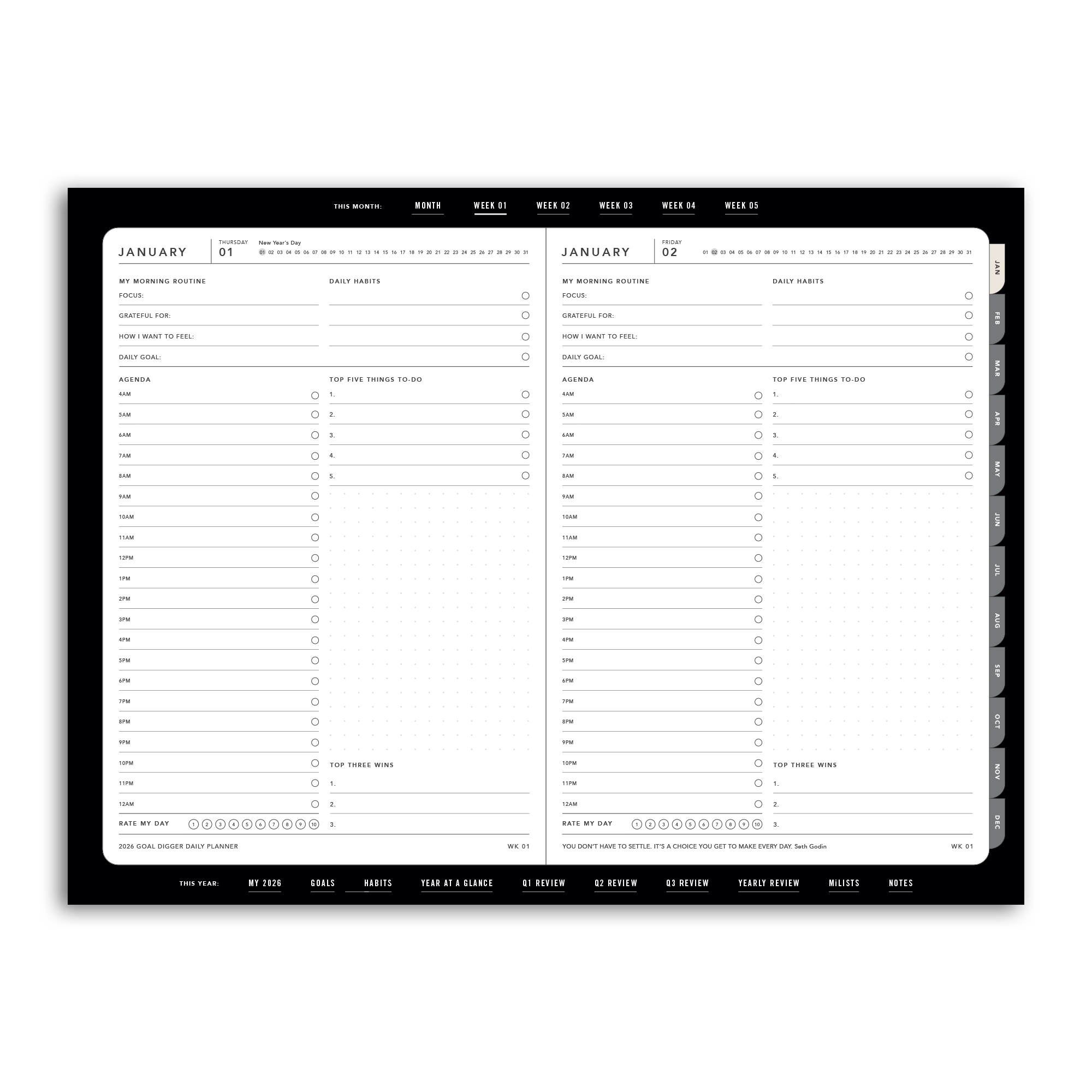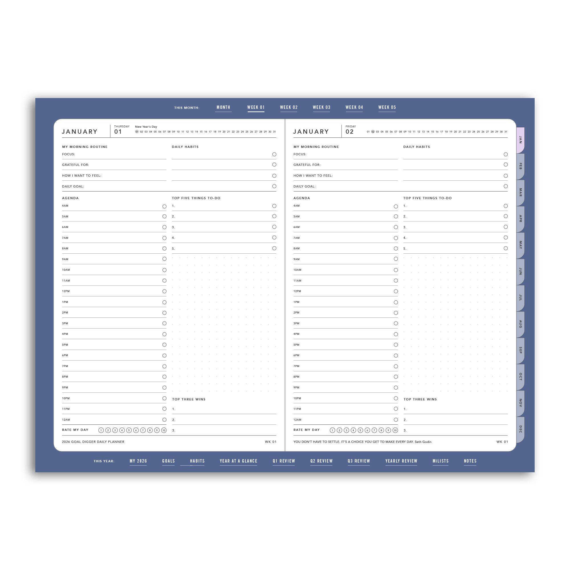 Our best-selling DAILY Goal Digger Planner has been converted into a Digital Planner (PDF Format) for 2026. With a day-to-a-page layout, this diary helps you to effectively plan, take action and make the most of every single day.